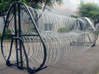 阻隔網(wǎng)(防暴阻隔網(wǎng))主要由動(dòng)支架、定支架、刀片網(wǎng)、回收裝置組件等四部分組成。