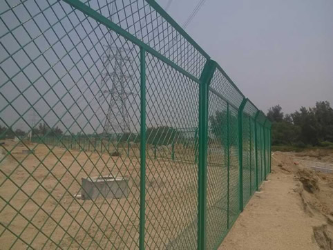 結構:用冷拔低碳鋼絲焊接而成的隔離網,用連接附件與鋼管立柱連接固定,可預埋也可采用法蘭盤膨脹栓固定。