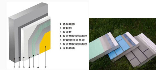 2、系統構成:粘結層、膨脹聚苯板保溫層、抹面砂漿防護層及飾面層